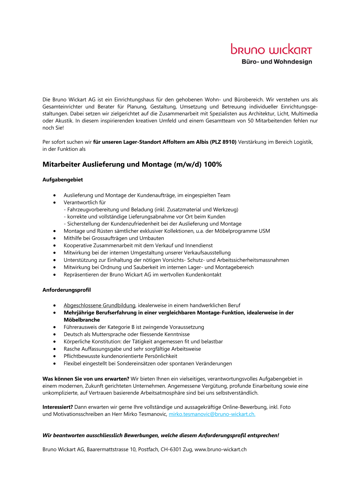 Wenn du neugierig und begeisterungsfähig für eine neue Herausforderung bei uns bist, dann sende uns deine kompletten Bewerbungsunterlagen und ein Motivationsschreiben. Wir freuen uns auf dich!